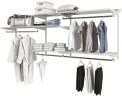 Гардеробная система Титан GS 350S - готовое решение для вашей гардеробной комнаты. Система собирается в 5 разных конфигурациях, что позволяет подстраивать ее под размеры помещения и ориентироваться на личные пожелания по расположению отдельных элементов. В комплект входят несущие рельсы и навесные направляющие, полки, штанги, аксессуары, крепежные элементы. Можно докупить множество дополнительных компонентов для гардеробной системы.